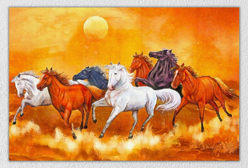 Vastu 7 Horse Framed Wall Painting Vastu Seven Running Horse Painting Art Street
